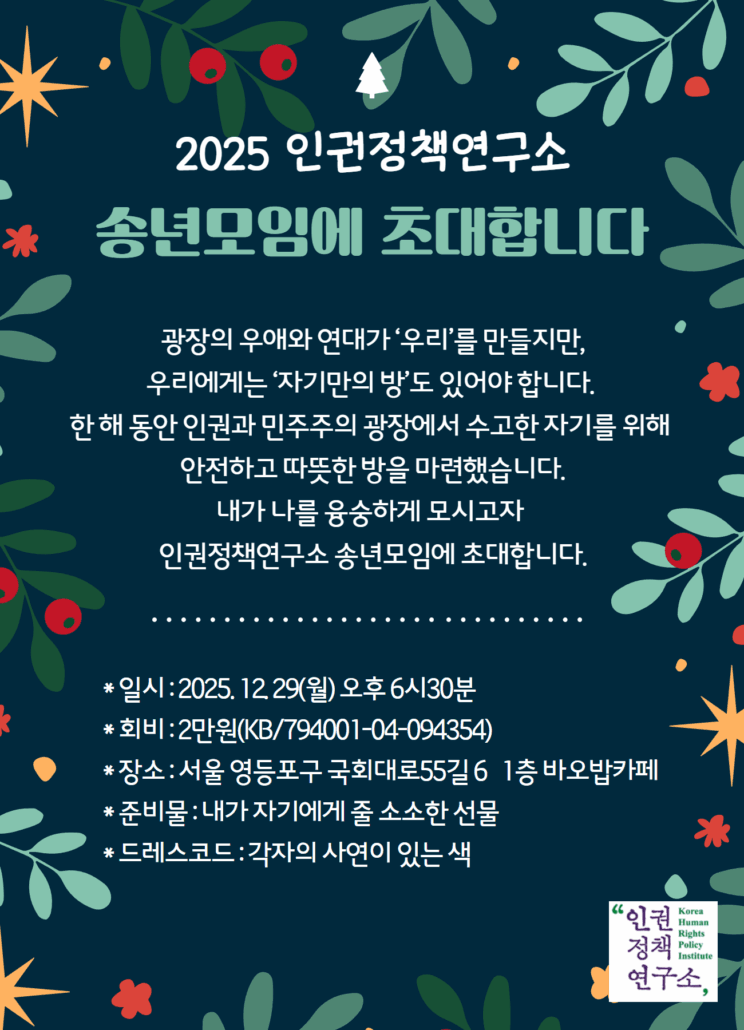 송년모임 신청하기 : https://forms.gle/39HpEGAS3yabktH77